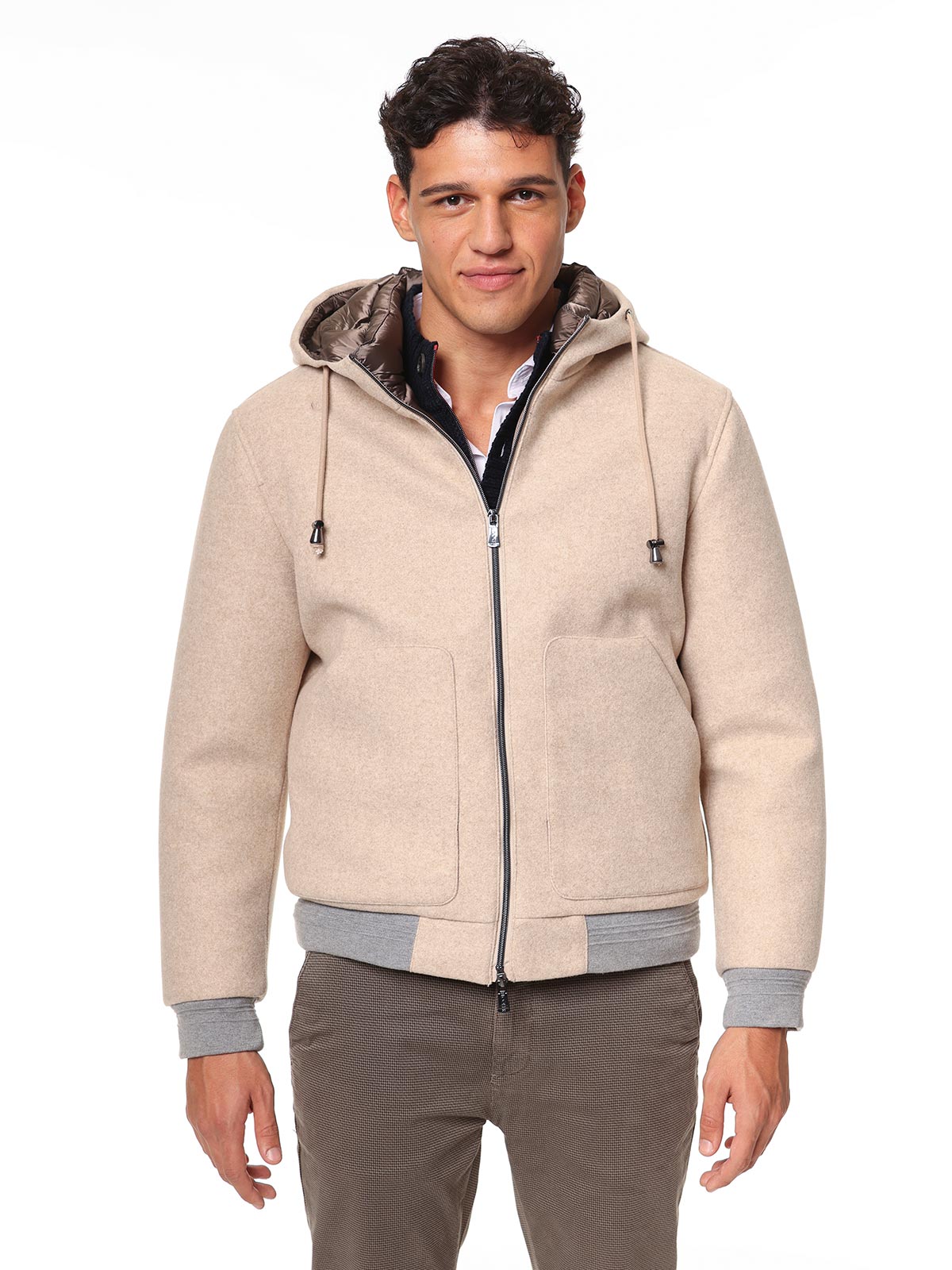 Giubbotto modello bomber, tessuto panno, elastico in vita.