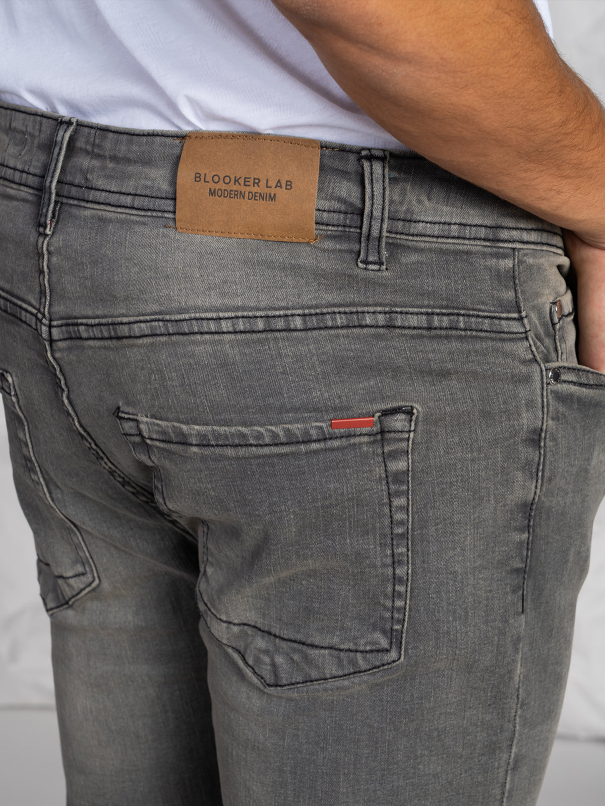 Jeans uomo MONTELLA in denim grigio elasticizzato. Slim fit, comfort e stile moderno per un look versatile e di tendenza.