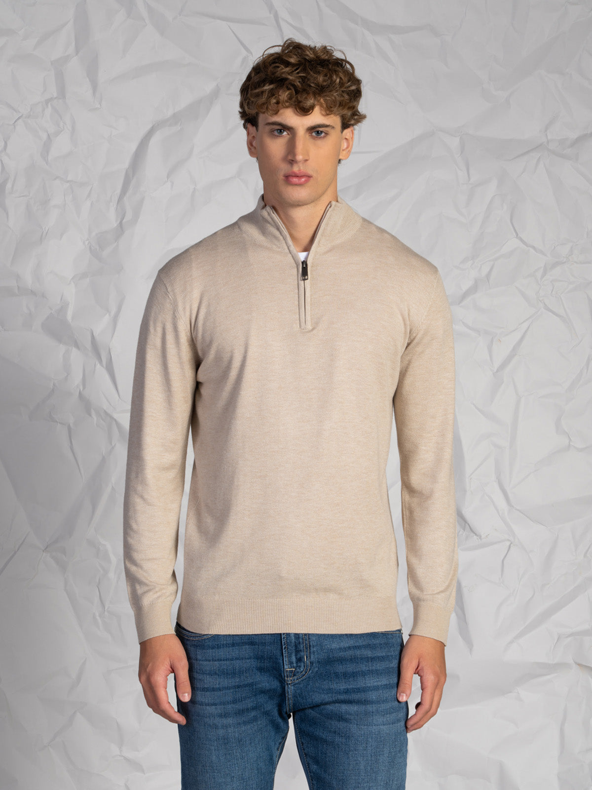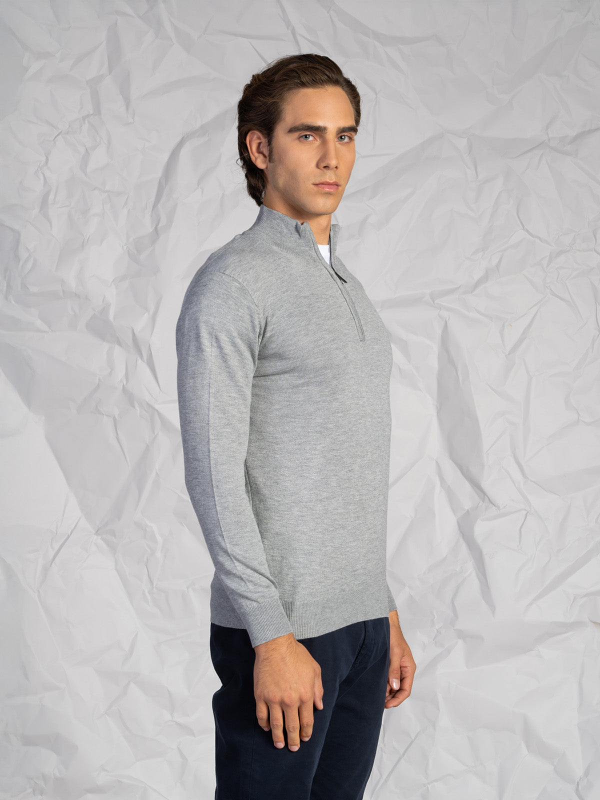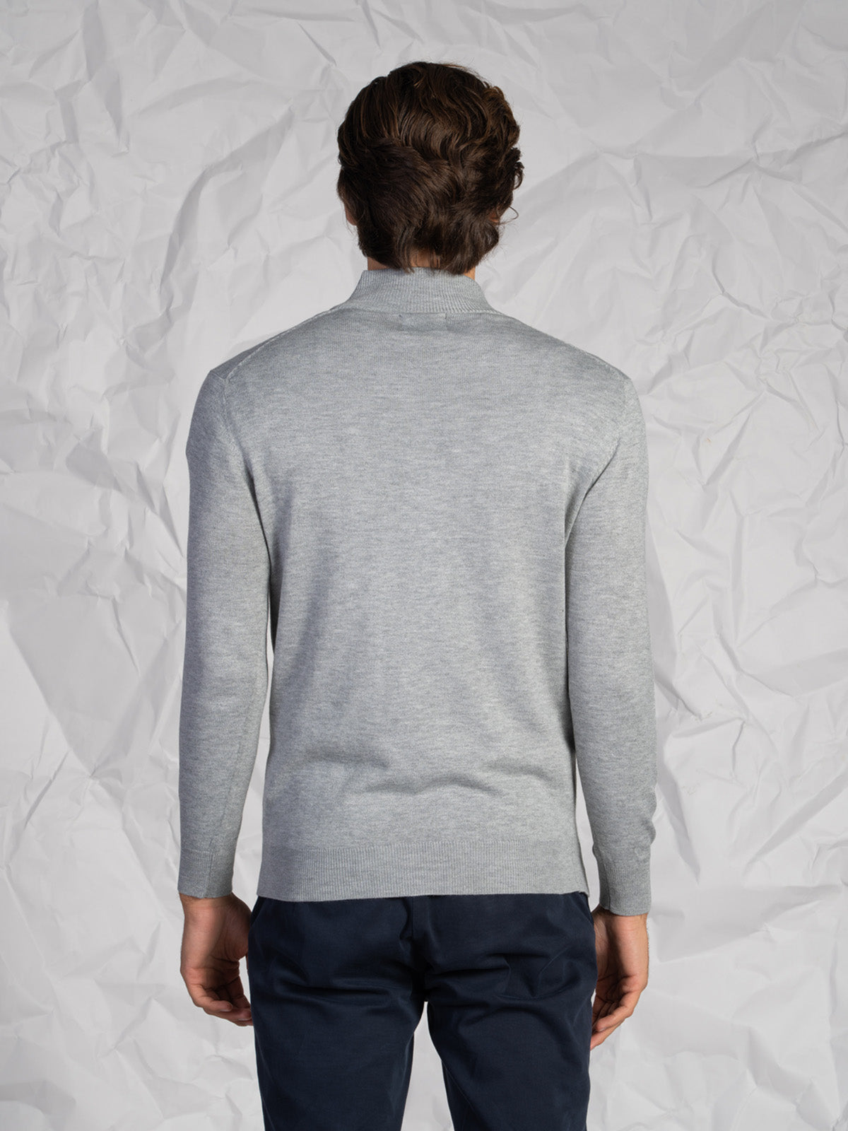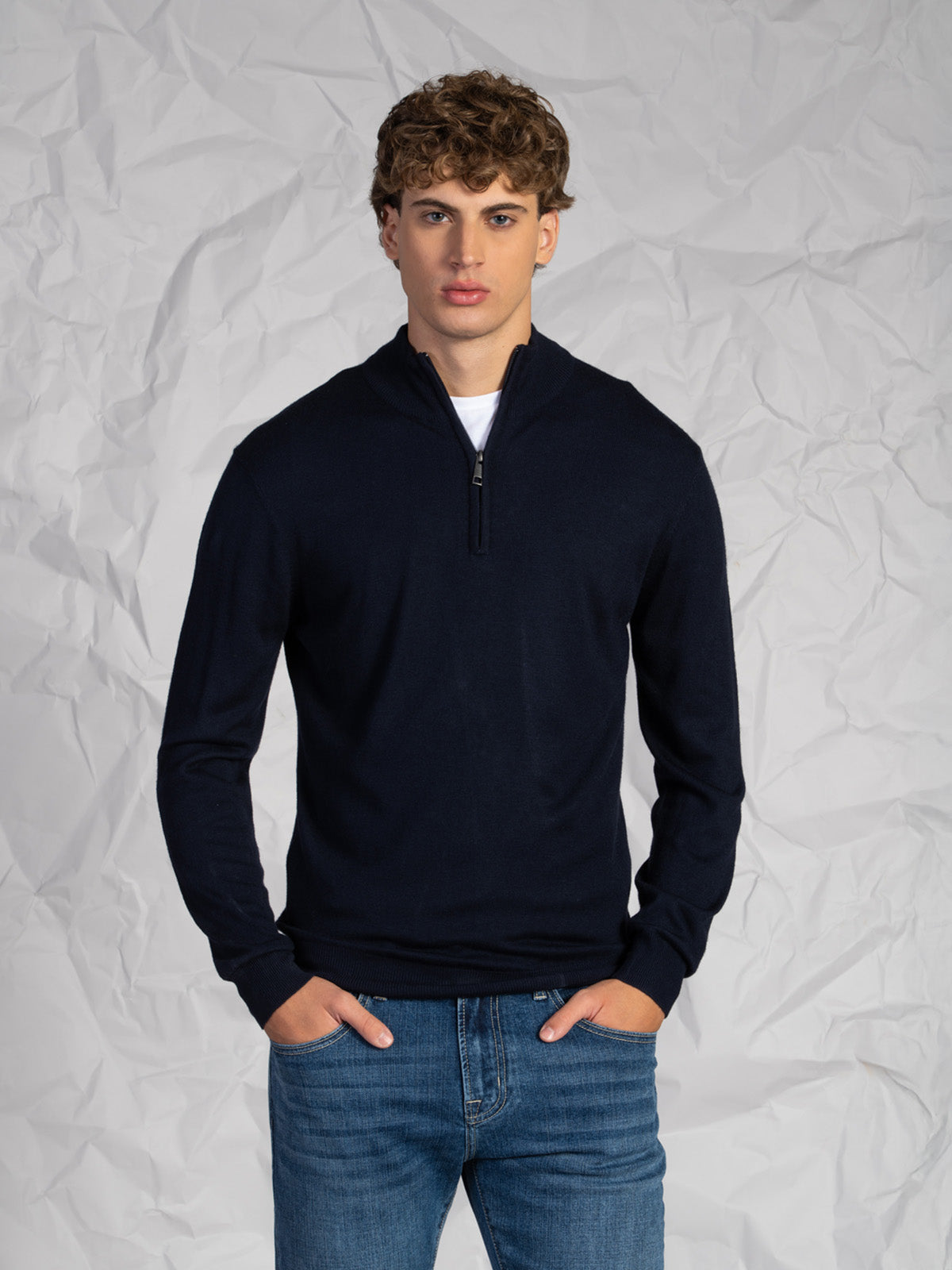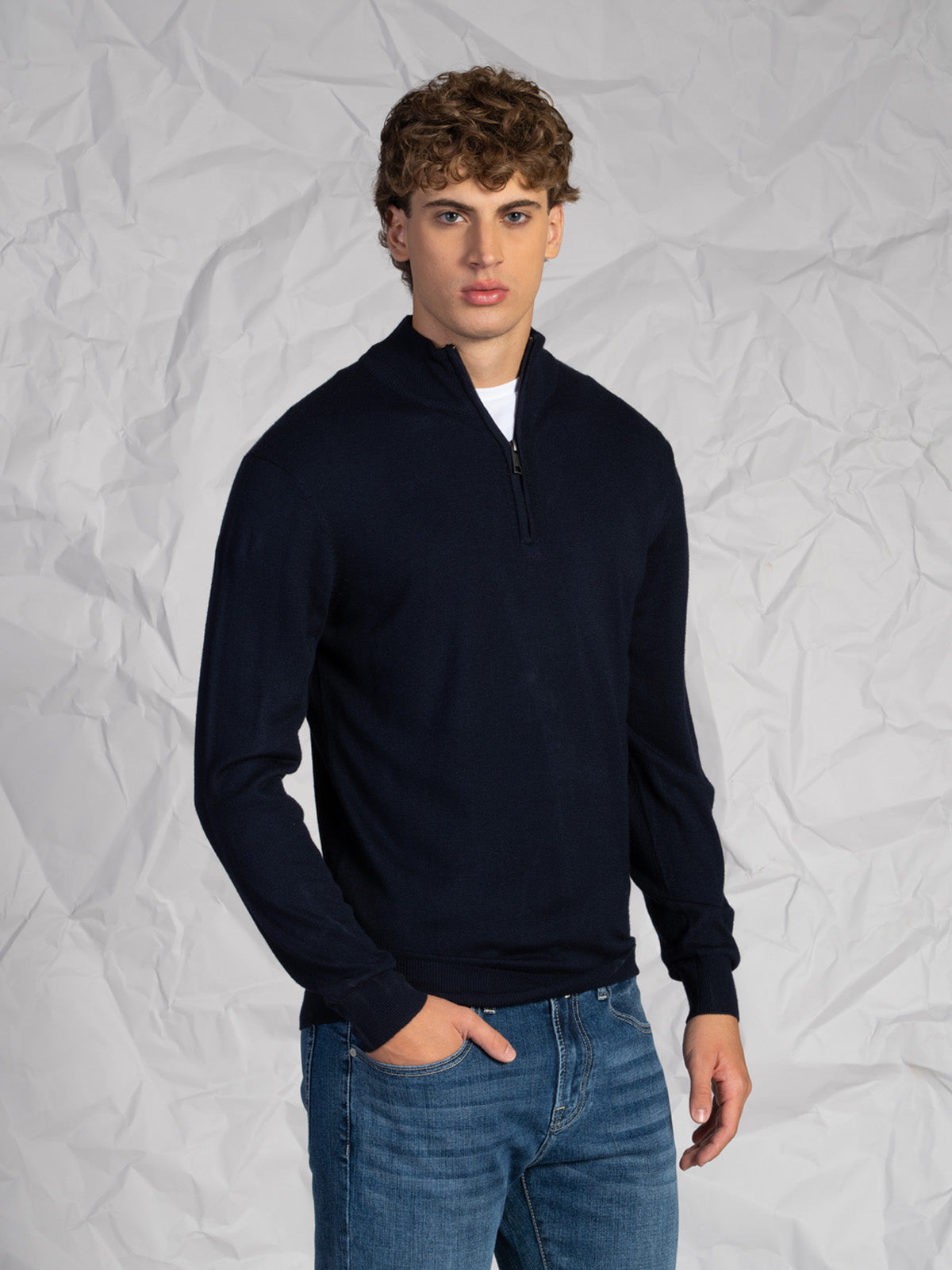 Maglia da uomo monocolore con lavorazione liscia, caratterizzata da un design pulito e contemporaneo. Il collo rotondo tipo bomber e la chiusura con mezza zip donano un tocco sportivo ed elegante allo stesso tempo, perfetto per la stagione più fresca.