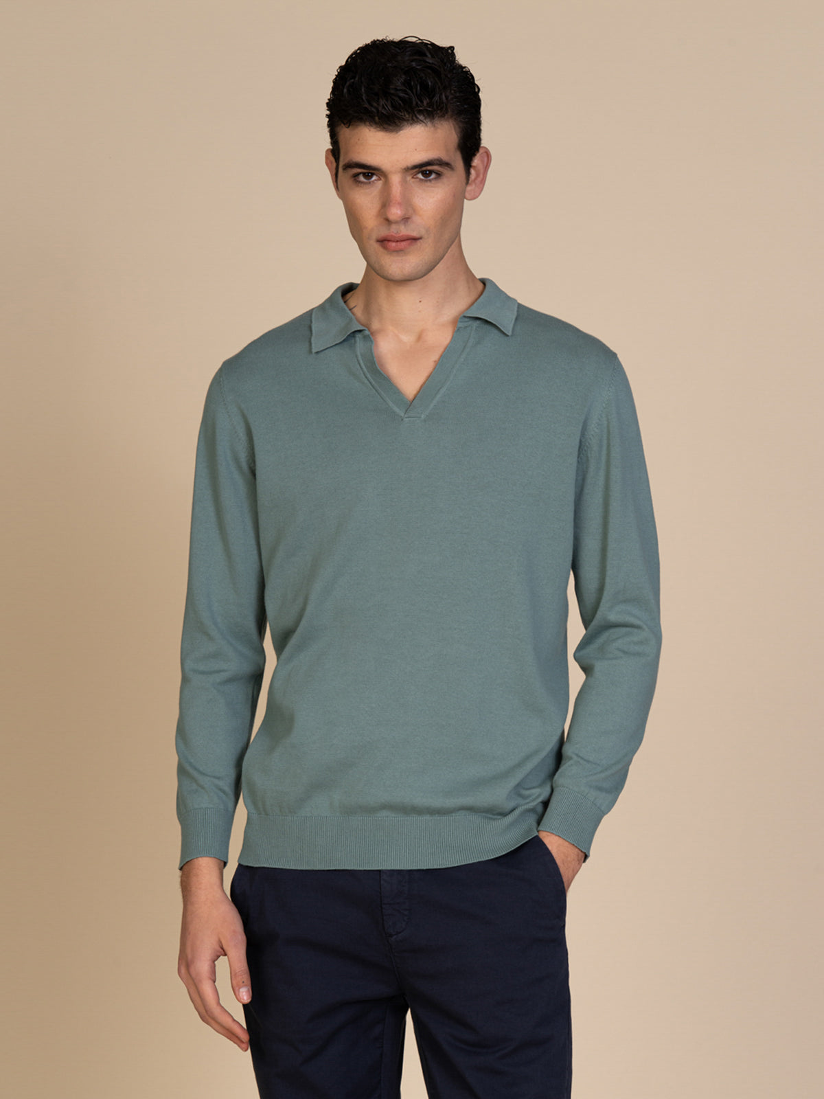 Maglia polo da uomo con collo derby e maniche lunghe, ideale per un look casual curato e versatile. Il design essenziale è completato dai bordi a coste, che garantiscono una vestibilità ordinata e confortevole. Perfetta da indossare nel tempo libero o in contesti smart casual, per uno stile moderno e sempre attuale firmato Blooker.