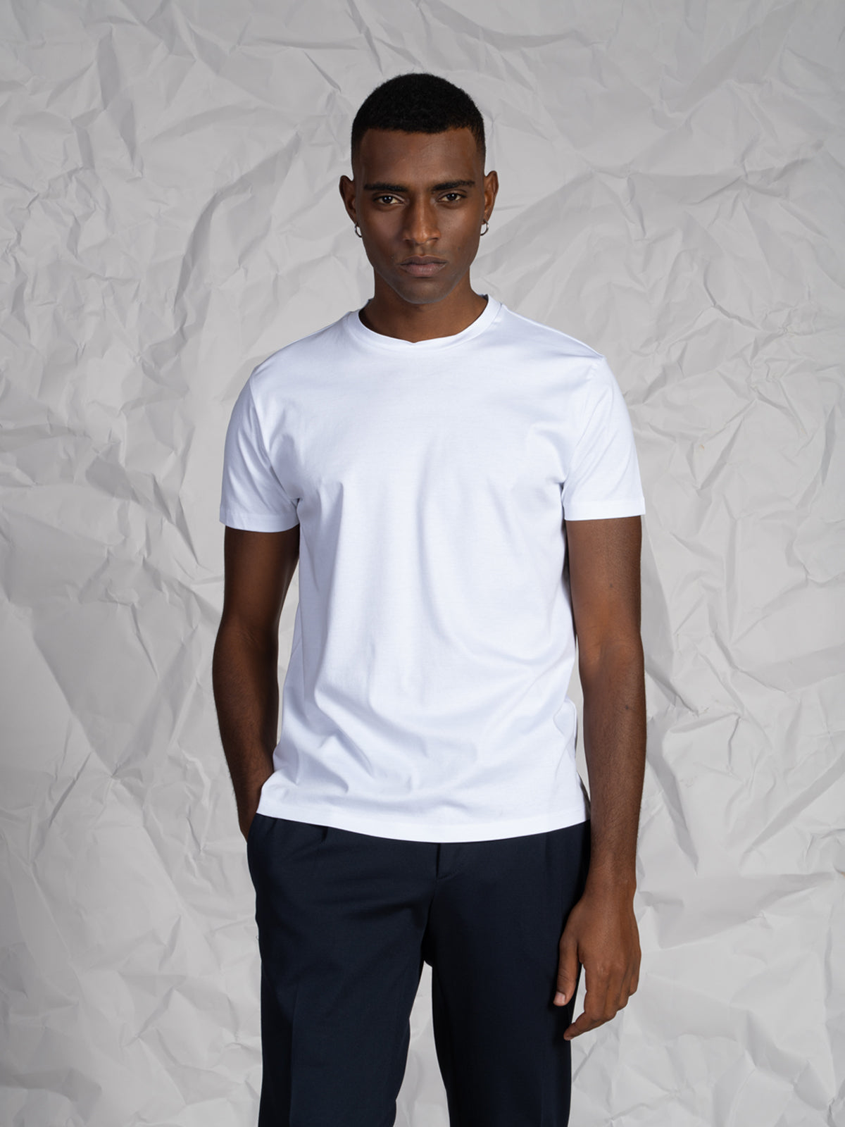 T-shirt monocolore in 100% cotone mercerizzato, caratterizzata da una mano morbida e una leggera lucentezza che dona al capo un aspetto raffinato. I bordi rinforzati garantiscono una migliore tenuta nel tempo e una vestibilità sempre perfetta.