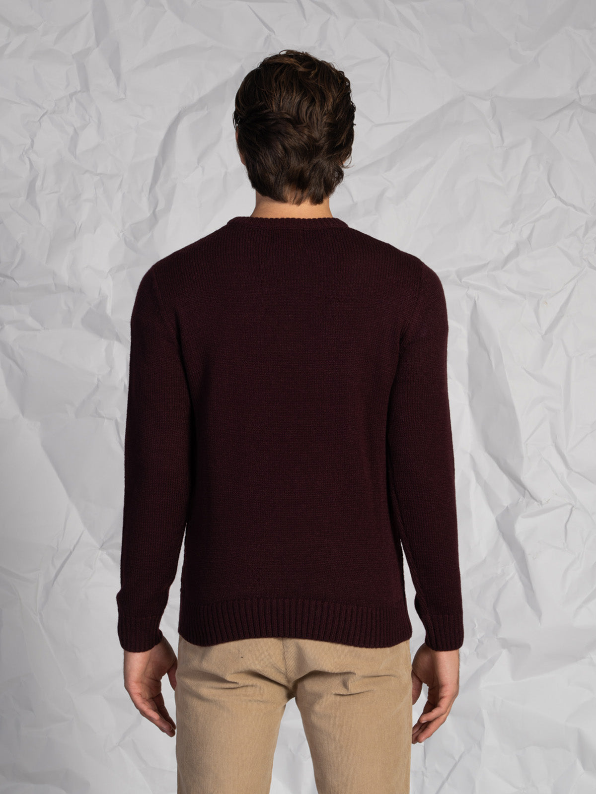 Maglia da uomo girocollo in misto lana, calda e confortevole. Presenta una lavorazione intrecciata sul davanti e una lavorazione liscia su retro e maniche, per un effetto raffinato e moderno. I bordi a coste completano il capo, ideale per un look casual ma curato.