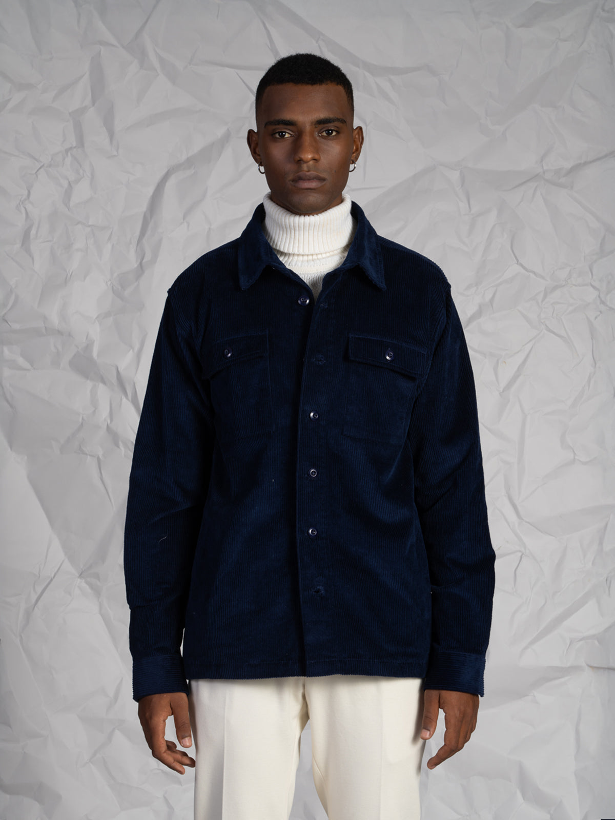 Overshirt da uomo in velluto morbido, dal tocco caldo e raffinato. Presenta chiusura frontale con bottoni, polsini abbottonati e due taschini a toppa con bottoncino che aggiungono un dettaglio pratico e di stile. La vestibilità classic fit offre comfort e libertà di movimento. Un capo versatile, perfetto da indossare come camicia o come giacca leggera, ideale per look casual e curati firmati Blooker.