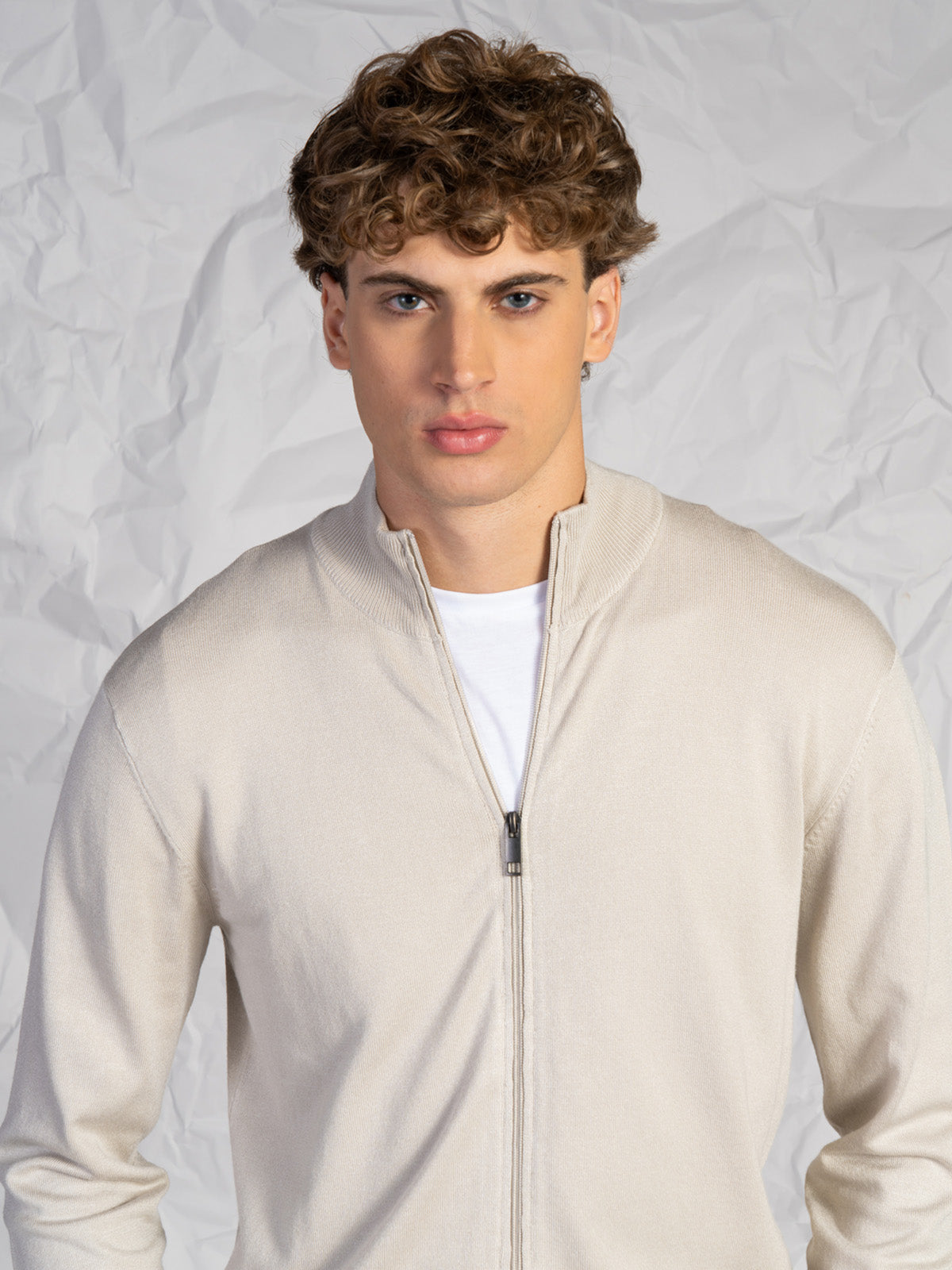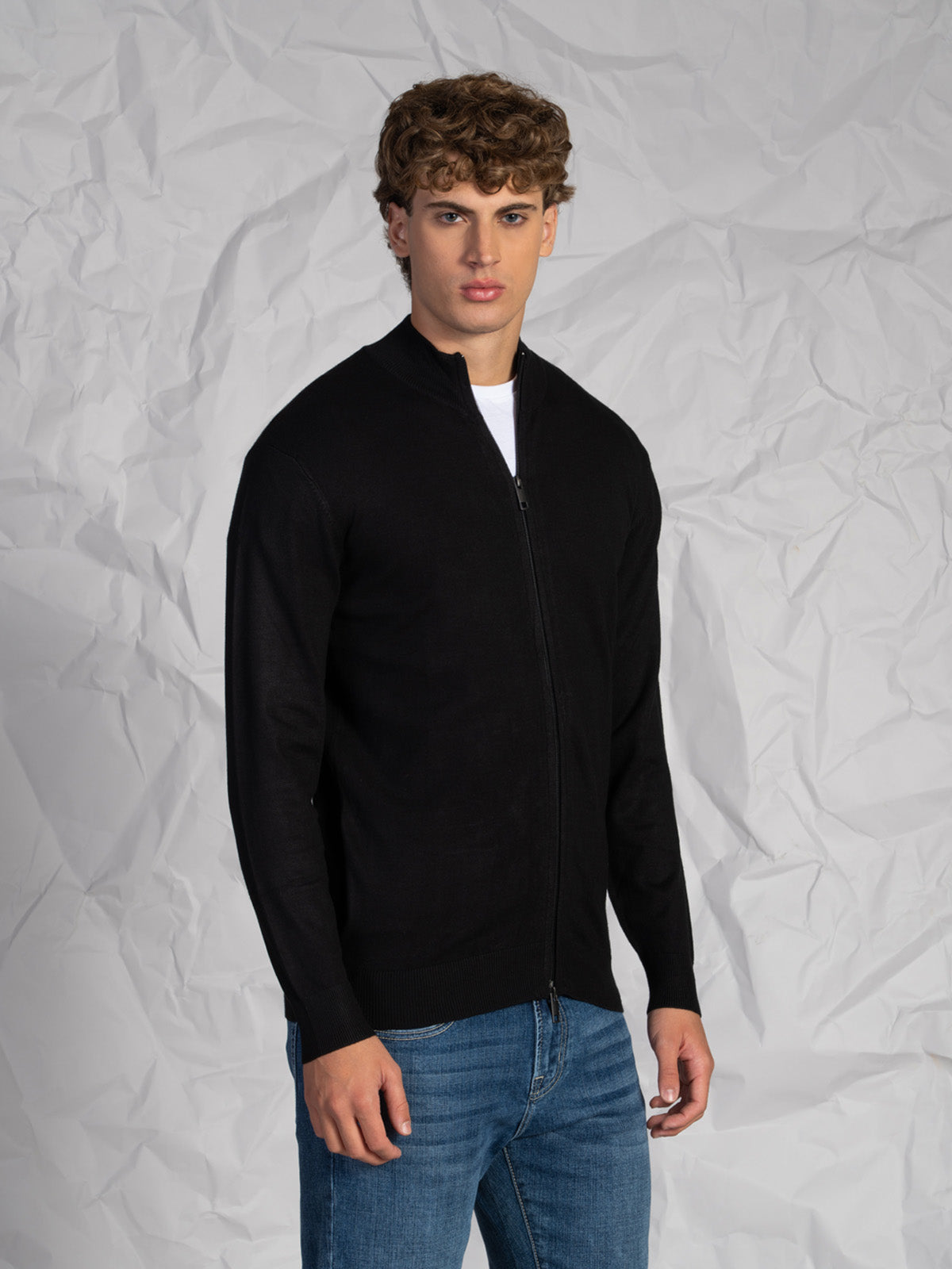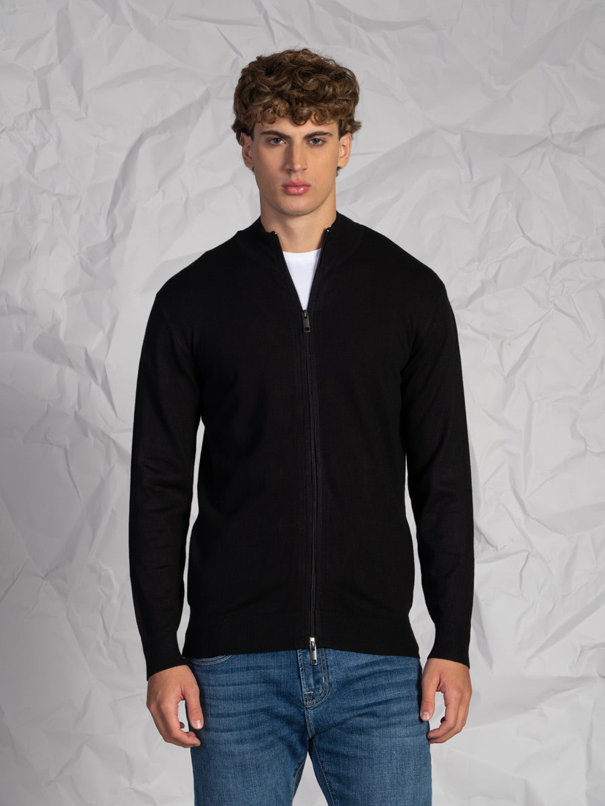 Cardigan da uomo realizzato in tessuto misto morbido e confortevole, ideale per la stagione più fresca. Il design a tinta unita e la chiusura intera con zip rendono questo capo pratico e versatile, perfetto da indossare sia aperto che chiuso.