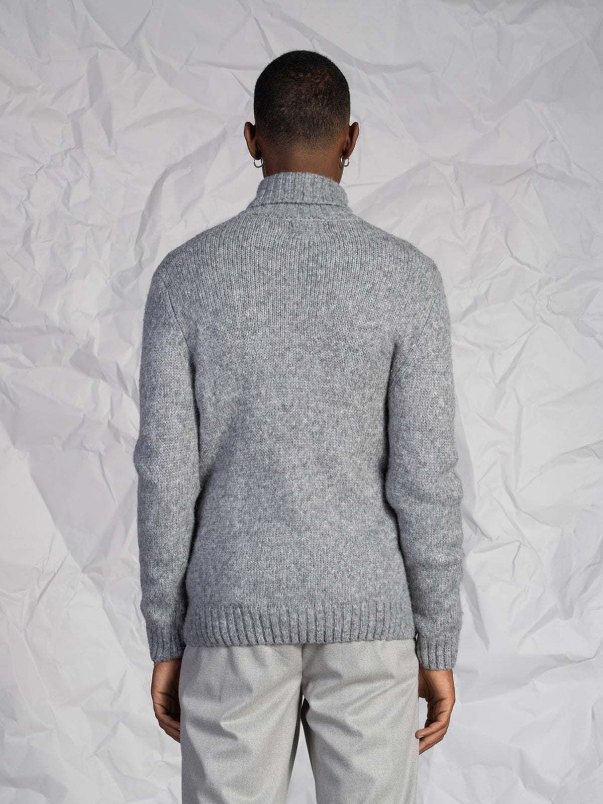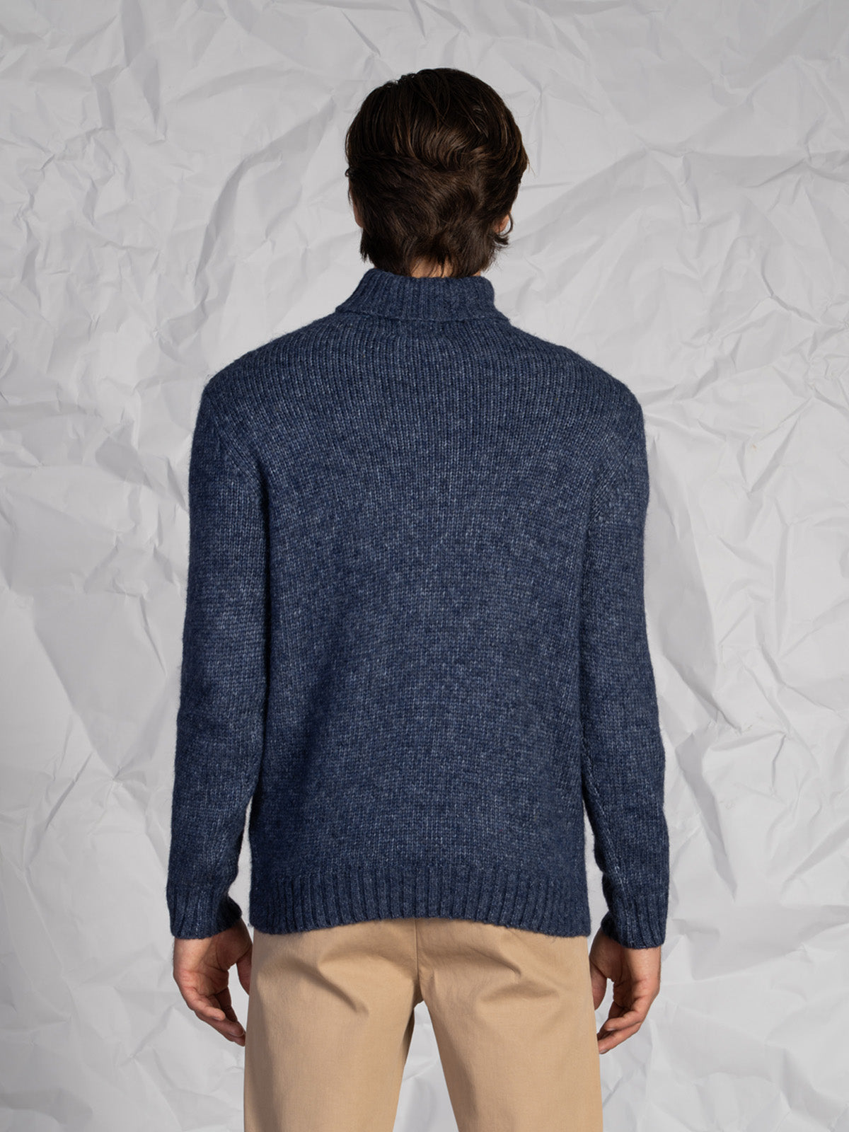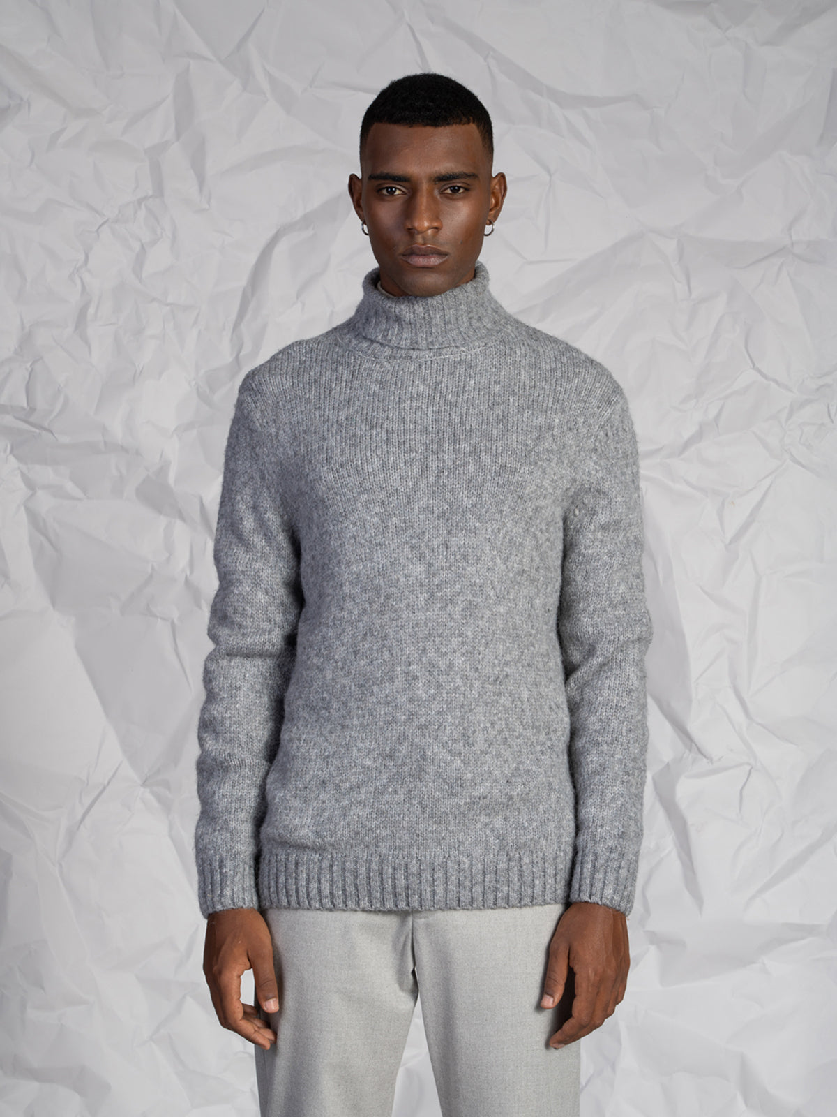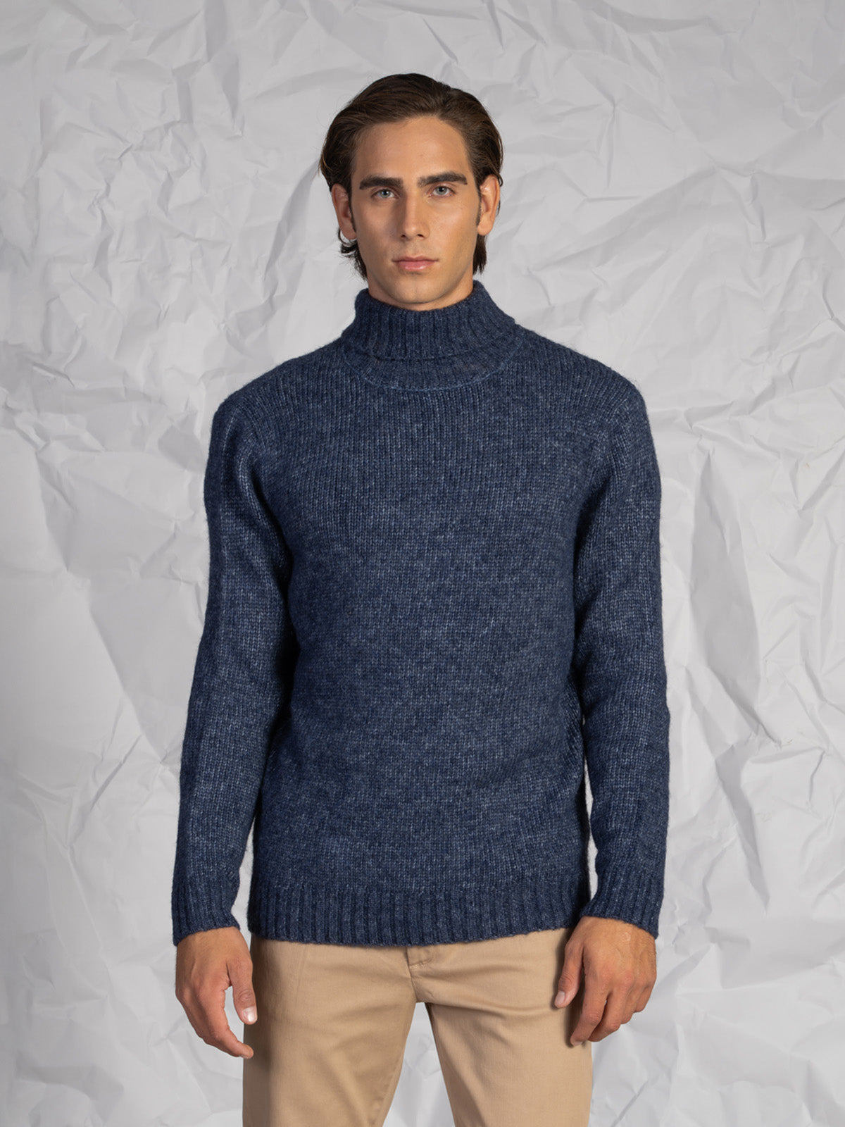 Maglia da uomo con collo alto, realizzata in tessuto morbido e confortevole. La tinta unita e i bordi a coste le donano uno stile pulito e versatile, perfetto per la stagione fredda. Un capo essenziale del guardaroba maschile, ideale per look casual o più eleganti.