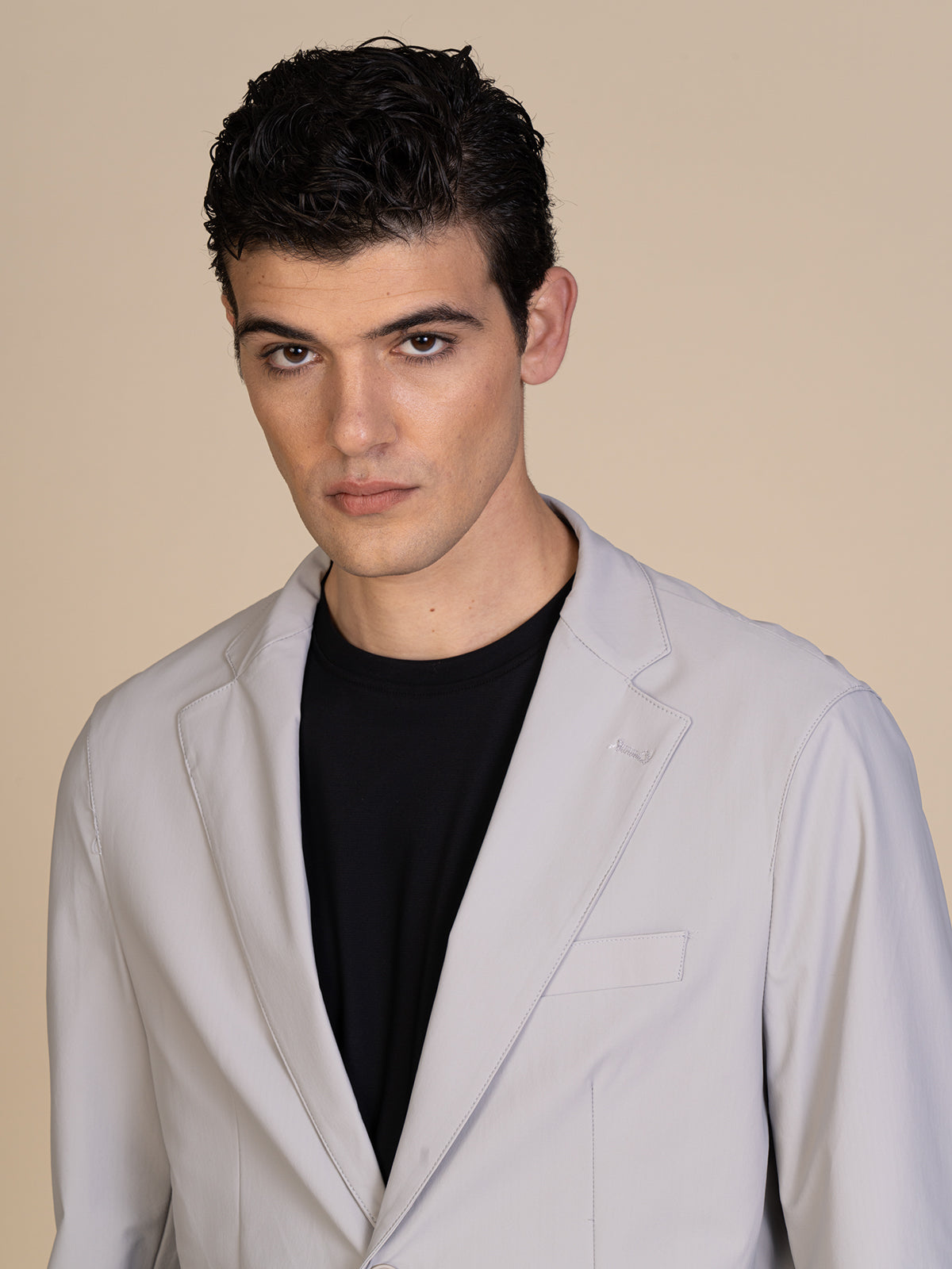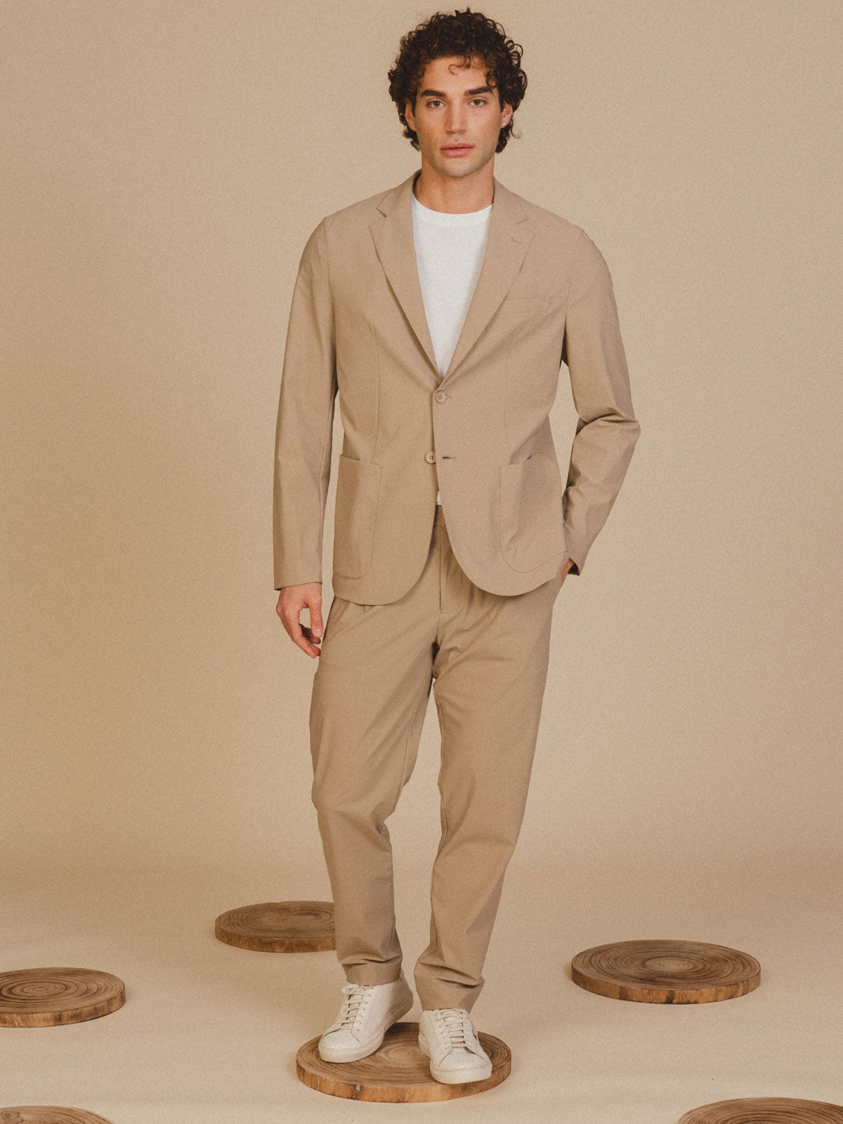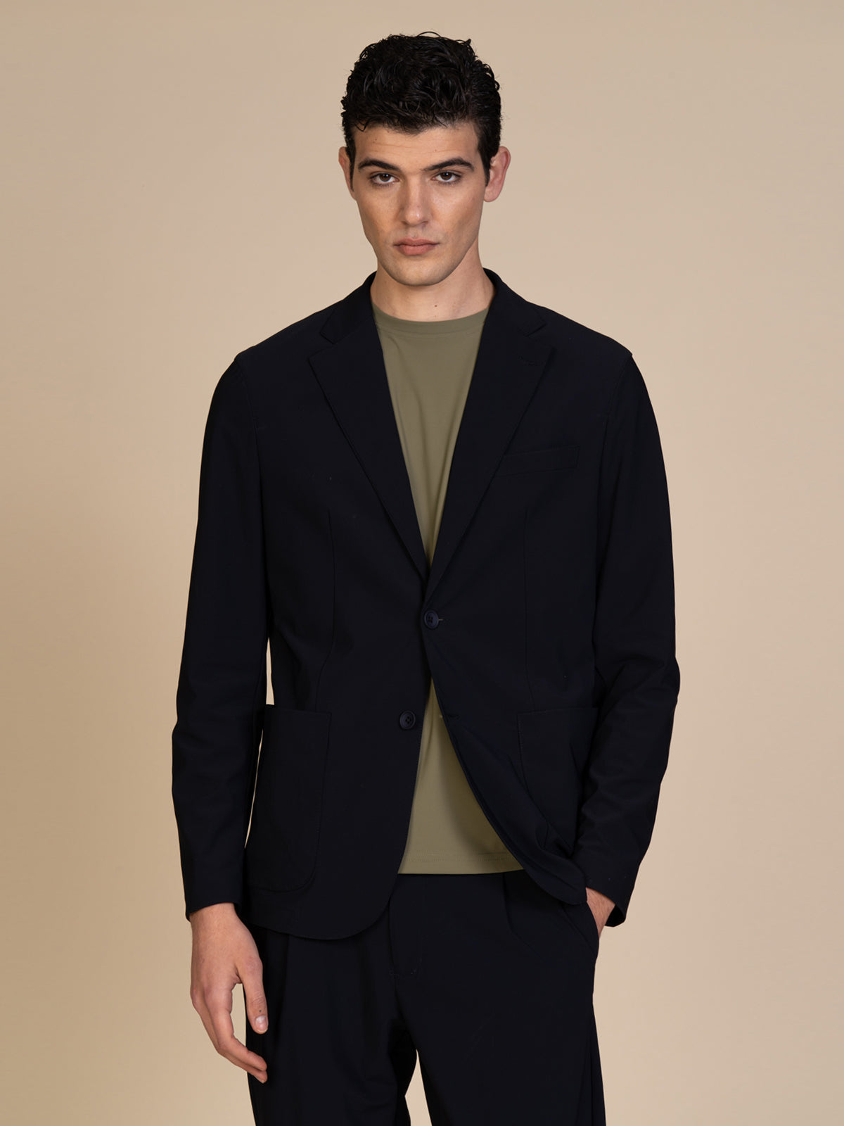 Giacca da uomo realizzata in tessuto tecnico, ideale per chi cerca uno stile moderno unito a praticità e comfort. Il design essenziale è completato dalla chiusura a due bottoni, che dona un’eleganza contemporanea adatta sia a look business che smart casual. Le due tasche a toppa aggiungono un dettaglio funzionale e dinamico, perfetto per un utilizzo quotidiano.