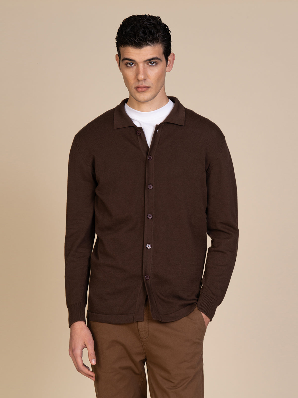 Maglia da uomo tipo cardigan realizzata in 100% cotone, leggera e confortevole, ideale per la mezza stagione. Il collo camicia dona un tocco raffinato e versatile, mentre la chiusura con bottoni completa il design con uno stile classico e curato. Perfetta da indossare sopra una t-shirt o una camicia per un look casual elegante firmato Blooker.