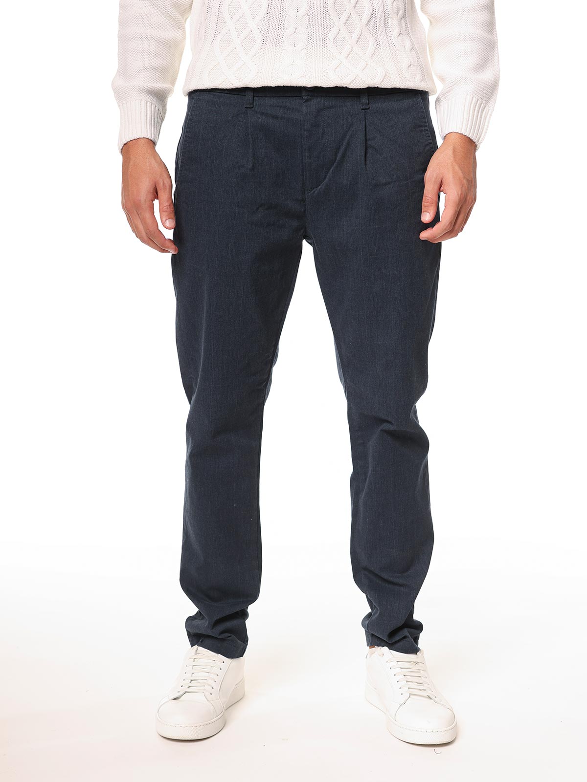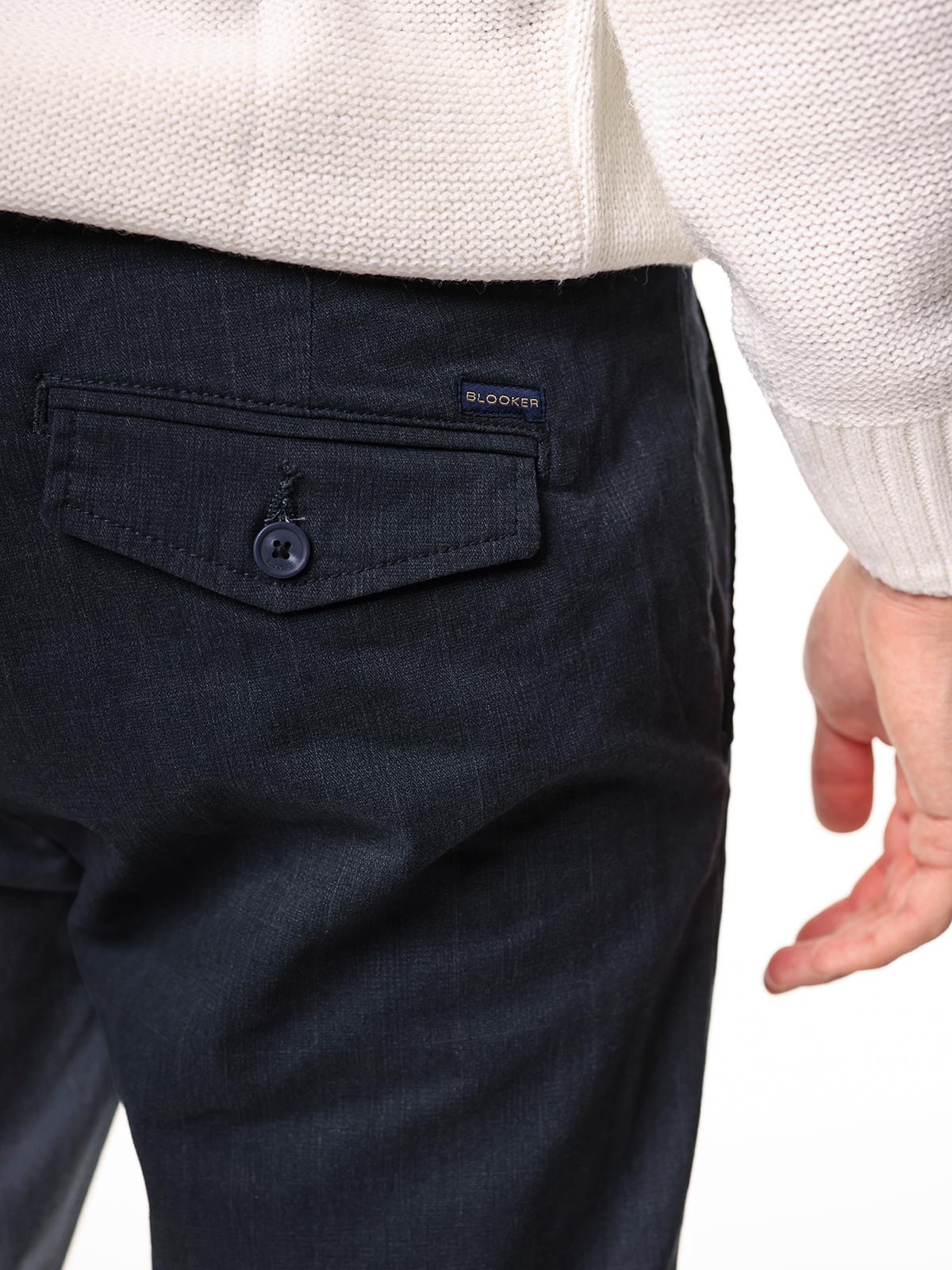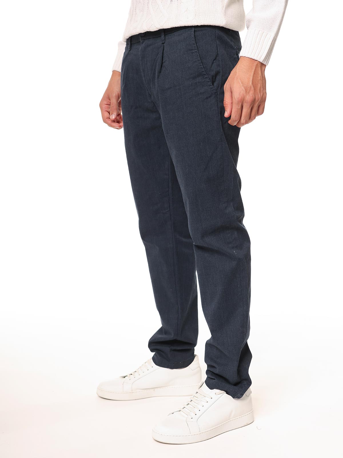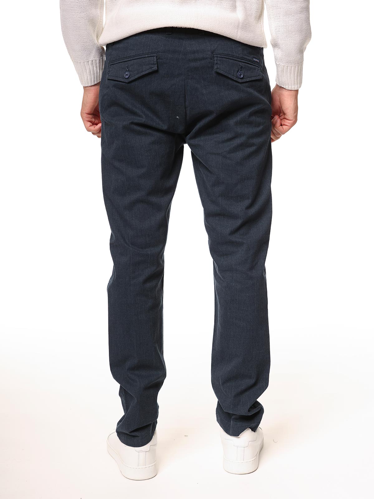 Pantaloni in cotone stretch modello tasca America, fantasia Principe di Galles. Due tasche laterali, due tasche con bottoncino sul retro. Vestibilità slim.