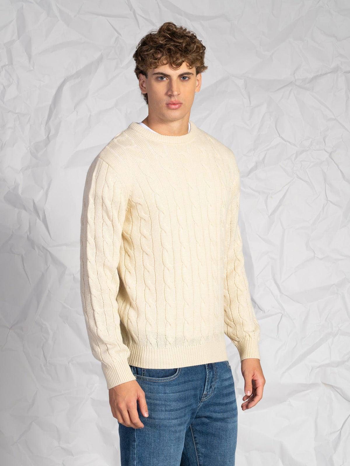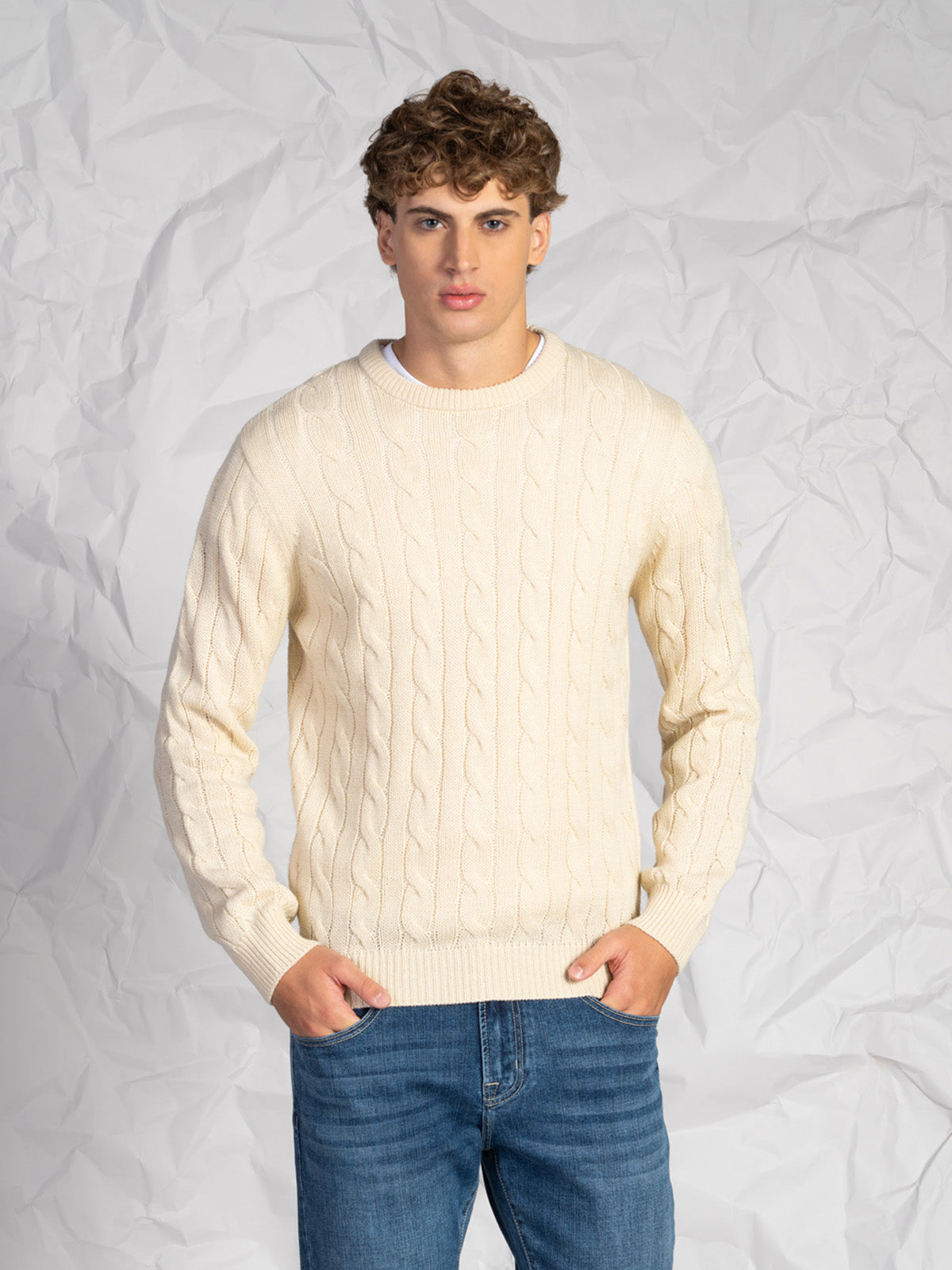 Maglia da uomo girocollo con lavorazione intrecciata sul davanti e bordi a coste. Realizzata in tessuto morbido e confortevole, è un capo caldo e versatile, ideale per la stagione più fresca. La tinta unita la rende facile da abbinare a qualsiasi look casual o elegante.